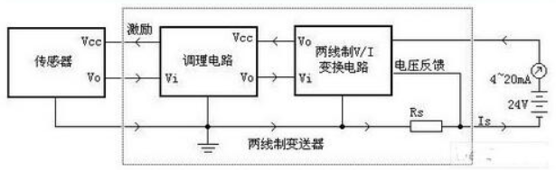 2021-09-17 06:40:47本文關(guān)鍵字:壓力傳送器 壓力傳送器主要由測量電路、過程連接件和測壓元件傳感器三部分組成。當(dāng)壓力信號作用于傳感器時,壓力傳感器將壓力信號轉(zhuǎn)換成電信號,經(jīng)差分放大和輸出放大器放大,然后經(jīng)V/A電壓電流轉(zhuǎn)換成與被測介質(zhì)的液位壓力成線性對應(yīng)關(guān)系的4-20mA標(biāo)準(zhǔn)電流輸出信號。 壓力傳送器電路圖: 壓力變送器為什么要采用電流信號呢?因為采用電流信號的原因是不容易受干擾,常取2mA作為斷線報警值。并且電流源內(nèi)阻無窮大,導(dǎo)線電阻串聯(lián)在回路中不影響精度,在普通雙絞線上可以傳輸數(shù)百米。下限沒有取0mA的原因是為了能檢測斷線:正常工作時不會低于4mA,當(dāng)傳輸線因故障斷路,環(huán)路電流降為0;上限取20mA是因為防爆的要求,20mA的電流通斷引起的火花能量不足以引燃瓦斯。